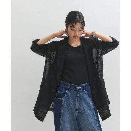 センシュアルな透け感が大人っぽい、テーラード仕様のダブルジャケット。
