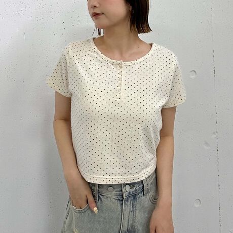 トレンド感を一気に演出してくれる、ドット柄と花柄のアソートTシャツ。