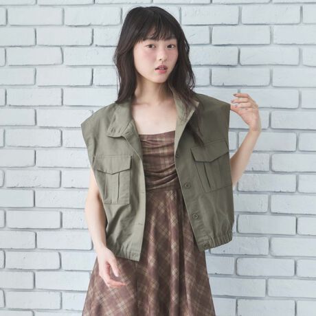 夏のレイヤードスタイルに取り入れやすい綿100%のミリタリーベスト。