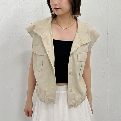 夏のレイヤードスタイルに取り入れやすい綿100%のミリタリーベスト。