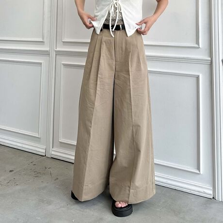 ベルト付きタックワイドチノパンツ