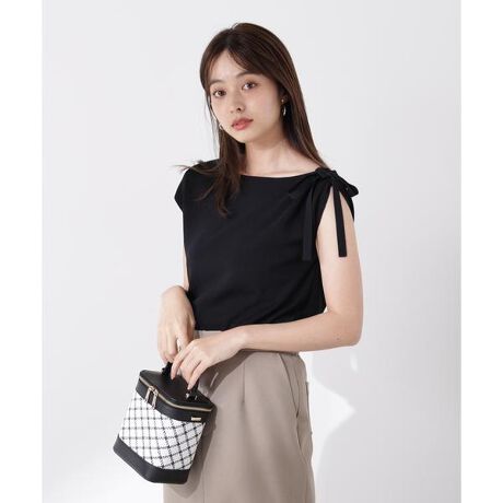 左肩にあしらったリボンがポイントのシンプルニットです。左肩のリボンは取り外し可能で、結ぶ位置によって雰囲気を変えて着られるデザイン。さらっとした糸を使っているので甘くなりすぎず、オトナらしさを演出します。