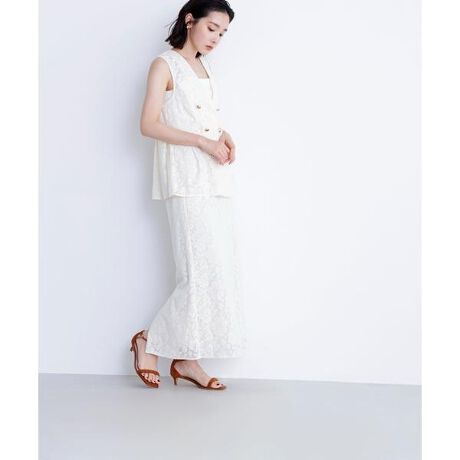昨年も人気だったレース素材のジレセットアップが登場!今年はよりメッシュレースのフラワー感にフェミニンな柄を使用しています。スッキリとしたウエスト仕様のナロースカートは、シンプルなシルエットなのでブラウスから夏ニットまで様々なトップスと合わせやすい1枚。汗ばむ時期に着やすいよう、肌にはりつきにくい裏地を付けています。同素材のジレと合わせたセットアップスタイルもおすすめです。<素材>フラットなメッシュレース素材を使用しています。<詳細>仕様・後ろファスナー裏地・あり透け感・ややあり / 光沢・なし / 伸縮性・なし生地の厚さ・普通<シリーズ>■ジレ[品番:0175255740]※モデルの着用画像の場合、光の当たり具合により、実際の色味と異なって見えることがございます。色味は、商品単体の画像をご参照ください。