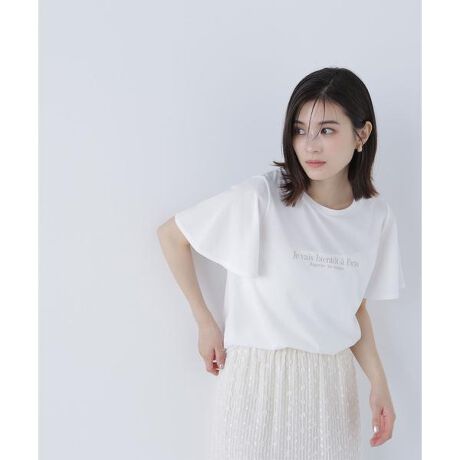 女性らしいフレンチロゴと二の腕を覆うフレアスリーブがポイントのTシャツです。カジュアルさを抑えたロゴやフレアスリーブなので、フェミニンなデザインがお好きな方にオススメ。軽くてさらっとした天竺素材を使用しているので涼しく着ていただけます。<素材>キレイな目面のプレーティング天竺を使用。オフカラーのみやや透け感があります。<詳細>仕様・開閉なし裏地・なし透け感・なし / 光沢・なし / 伸縮性・あり生地の厚さ・普通※モデルの着用画像の場合、光の当たり具合により、実際の色味と異なって見えることがございます。色味は、商品単体の画像をご参照ください。