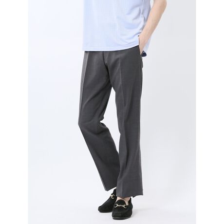 ストレッチウォッシャブル ウール混 スリムフィット ノータックパンツ 無地グレー