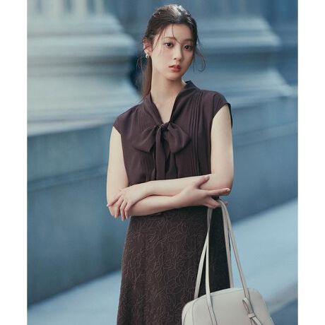 楊柳素材で甘さがほどよく抑えられている気がします。ボウタイがもともと襟についていて便利ではありますが、アシンメトリーな結び方もしたかったのでそれができない点が唯一残念です。