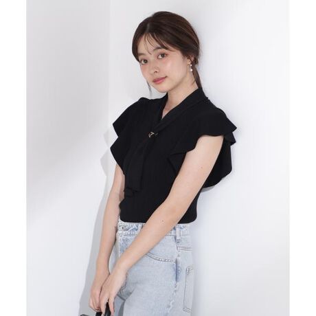 華奢なトリプルモチーフのリングがオトナ可愛いタイ付きニットです。リングは取り外し可能なので、タイを結んでも着られます。肩先をそっと隠してくれるラッフルスリーブも愛らしい印象。フェミニンなスカートにも、カジュアルなデニムパンツにも着回せます。