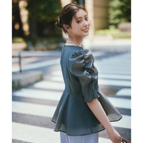 春に人気だったペプラムブラウスを半袖にアップデート!すっきりと着られるシルエットはそのまま、半袖に合うボリューミーなパフ感と、アームホールの始末をパイピングにしてより着やすく改良しています。身頃に切り替えステッチをアクセントに入れて、甘すぎない雰囲気のペプラムシルエットに。程よいシアーとさりげない表情のある素材を使用しているので、カジュアルダウンもしやすいデザインです。<素材>表情のあるシアー素材を使用しています。<詳細>仕様・後ろファスナー裏地・あり透け感・あり / 光沢・なし / 伸縮性・なし生地の厚さ・薄手※モデルの着用画像の場合、光の当たり具合により、実際の色味と異なって見えることがございます。色味は、商品単体の画像をご参照ください。