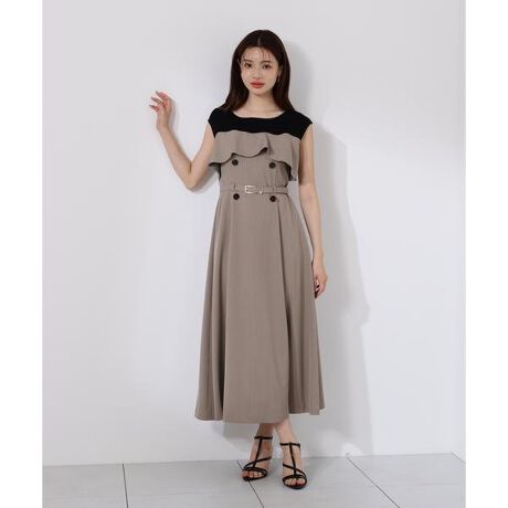 レイヤード風ワンピースなのでごわつかず、1枚でコーディネートが決まり、すっきり着られるのが嬉しいポイント。背中はゴム仕様で着心地も良いです。共地ベルトがセットされ、ウエスト位置が高めなのでスタイルアップも叶います。