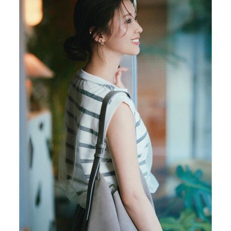 薄手のチュールとラメニットをレイヤードした、2枚仕立てのトップス。ボトムスとバランスが取りやすい着丈にし、お仕事シーンにも合わせやすいキレイめな印象のデザインです。<素材>さらっとしたハイゲージ糸とラメ糸を引き揃えた素材です。ボーダーカラーは、ボーダー部分にラメ糸を使用。<詳細>仕様・開閉なし裏地・なし透け感・なし / 光沢・ややあり / 伸縮性・あり生地の厚さ・ニットは普通、チュールは薄手※モデルの着用画像の場合、光の当たり具合により、実際の色味と異なって見えることがございます。色味は、商品単体の画像をご参照ください。
