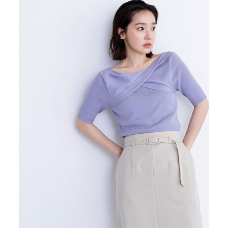 フロントにツイストデザインを入れた大人っぽい雰囲気のニットプルオーバー。ツイストデザインが顔まわりを華やかに印象づけながら、少し開けた襟ぐりがデコルテラインをすっきり見せてくれます。リブ編みですっきりと編み立てたニットは、フレアスカートを合わせるなど、フェミニンなスタイリングがおすすめです。<素材>清涼感のあるタッチの糸を使い、リブ編みで編み立てています。<詳細>仕様・開閉なし裏地・なし透け感・なし / 光沢・なし / 伸縮性・あり生地の厚さ・普通※モデルの着用画像の場合、光の当たり具合により、実際の色味と異なって見えることがございます。色味は、商品単体の画像をご参照ください。