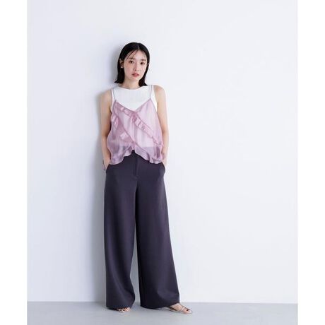<BLANC(ブラン)>今のほしいをここに。自分らしく、自由なスタイリングを楽しみたい。洗練されたCLASS感と“今”を感じるモードフェミニンなアイテムを提案します。カットソー素材がリラックスしたはき心地のワイドパンツ。腰まわりをすっきりとさせ、前はファスナー仕様なので、カジュアルすぎないデザインです。フェミニンなトップスと合わせたMIXスタイルがおすすめです。<素材>脚のシルエットが出にくいキレイな印象のカットソー素材を使用。<詳細>仕様・前ファスナー裏地・なし透け感・なし / 光沢・なし / 伸縮性・ややあり生地の厚さ・普通※モデルの着用画像の場合、光の当たり具合により、実際の色味と異なって見えることがございます。色味は、商品単体の画像をご参照ください。