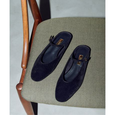 やや深めに甲を覆うシルエットが新鮮なミュール。