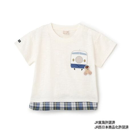 【新幹線】裾チェックアップリケ半袖Tシャツ