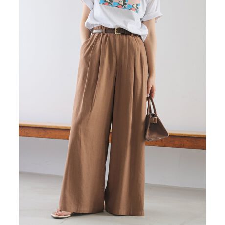リネン混タックフレアパンツ