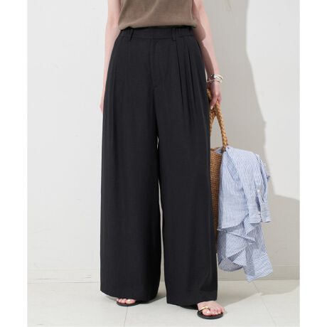 リネン混タックフレアパンツ