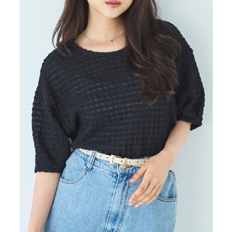 【mil (ミル)】ぽこぽこカットジャガード シアートップス
