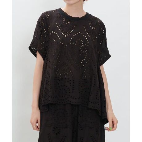 ちら見えする肌見せ感が女性らしい印象で、綿ボイルなので軽さも着心地も◎