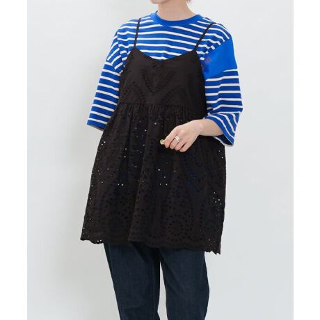 ちら見えする肌見せ感が女性らしい印象で、綿ボイルなので軽さも着心地も◎