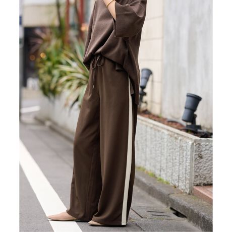 カットジャージー素材を使用した、快適さときちんと感を兼ね備えたラインパンツ。
