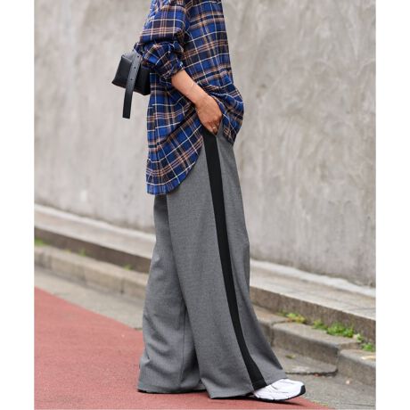 カットジャージー素材を使用した、快適さときちんと感を兼ね備えたラインパンツ。