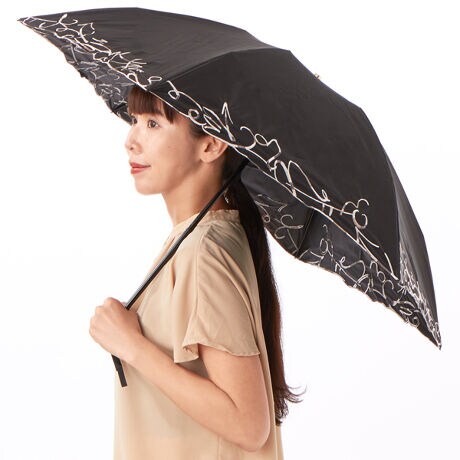 12星座のプリント柄を大胆にアレンジし、3色刺しゅうで表現したデザインが特徴の晴雨兼用ミニ傘。踊るように配された12星座マークと、3色でブロッキングされた刺しゅうがモダンでユニークな雰囲気を演出。ブラックを基調としたシックな配色が、大人モードの日傘としてスタイルを引き立てます。ブランドのアイコンである大きなホックもポイント。UVカットはもちろん、熱中症対策にも優れた「東レ サマーシールドLII」生地を使用。カーボン骨使用で携帯に便利な軽量ミニ傘です。