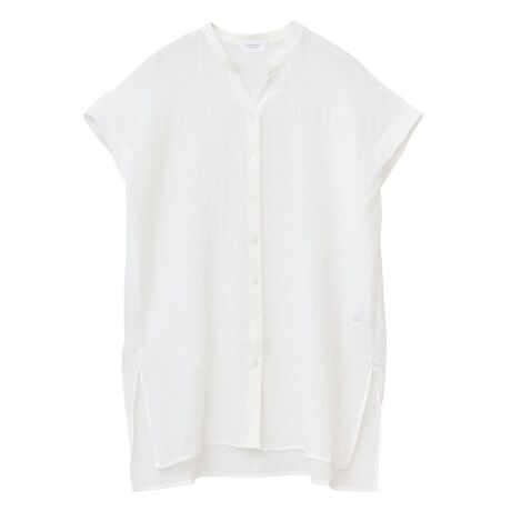 程よいシアー素材がシーズナルな着こなしを演出するシャツワンピース。首周りがすっきりと見えるスキッパーネックに、フレンチスリーブがフェミニンな印象です。リラックス感溢れる今年らしいデザインもポイント。ワンピースとしてはもちろん、パンツやレギンスを合わせたカジュアルスタイルもおすすめです。透け感[ややあり]