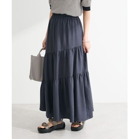 歩くたびに揺れるフレア感が女性らしい着こなしを叶えるデザインスカート。アシンメトリーに施したティアードギャザーでボリュームたっぷりのシルエットが特徴的なデザインです。ウエスト総ゴムでリラクシーな穿き心地も嬉しいポイント。さらりとしたリネンライクの生地感で、スイッチシーズンにもちょうど良いおすすめのアイテムです。生地の厚さ[普通]
