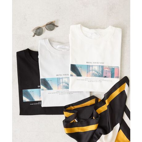 フロントのフォト&ロゴプリントがこなれ感たっぷりなTシャツ。コットン100%素材でお手入れもしやすく、ゆとりのあるサイズ感で快適な着心地も魅力的です。コーディネートに合わせやすいベーシックな色展開にも注目。一枚着はもちろん、ジャケットやカーディガンのインナーとしても活躍するおすすめのアイテムです。透け感[ややあり]