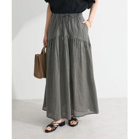 インド綿 ラウンド切替柄ギャザーボイルスカート