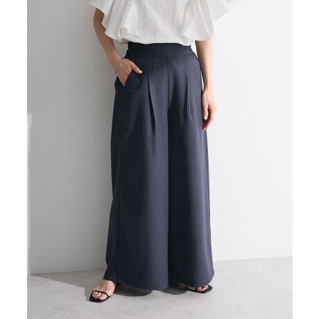涼し気なリネンライク素材がシーズナルな雰囲気のワイドパンツ。セミワイドな縦長シルエットで幅広いスタイルに合わせやすいデザインです。ウエストフロントはすっきりと見せ、バッグゴムのストレスフリー仕様。透け防止用の裏地はさらりと肌離れもよく、暑い季節にも快適にご着用いただけます。透け感[ややあり]