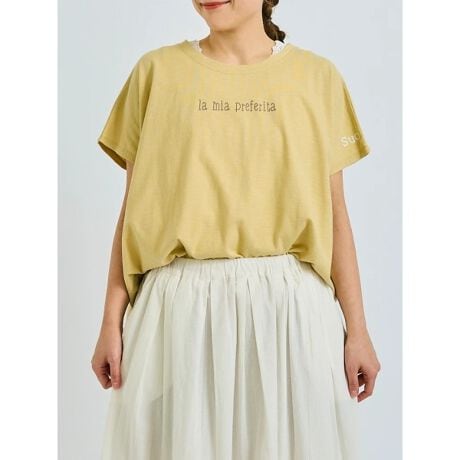 [型番:25410669260]ロゴプリントを散りばめたユニークなTシャツ。コンパクトなフレンチスリーブで肩周りや二の腕を華奢な印象に見せてくれるのも嬉しいポイント。肌触りの良い綿100素材を使用しており、快適に着用することができるアイテムです。Hare no hi/ハレノヒ