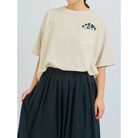 ポケットフラワー刺しゅうTシャツ