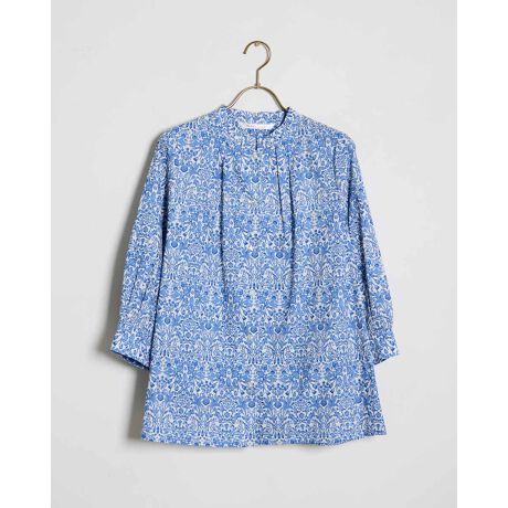 さらっとした肌触りのボタニカルプリント綿ローンブラウス。