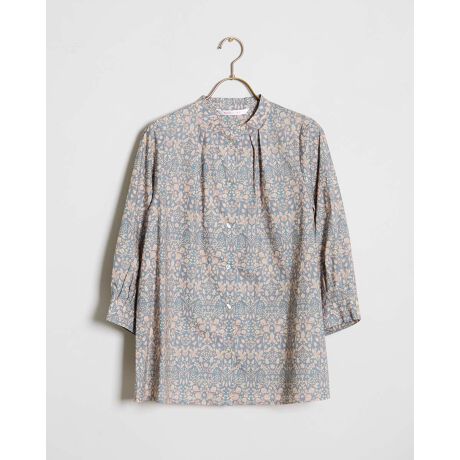さらっとした肌触りのボタニカルプリント綿ローンブラウス。