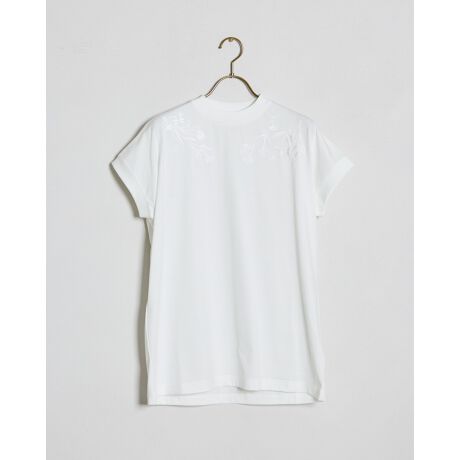 肩口にあしらった上品な同色系ボタニカル刺しゅうがさりげなく主張します。