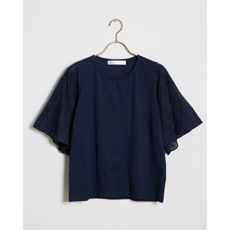 レースのフレアスリーブが涼し気でエレガントな雰囲気のコットンカットソー。