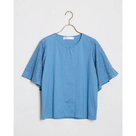 レースのフレアスリーブが涼し気でエレガントな雰囲気のコットンカットソー。