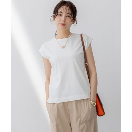 【スタッフコメント】▼身長158cm|着用サイズ2 (通常着用サイズM)大人のカジュアルスタイリングに馴染むきれいめな素材感のカットソー。程よいゆとりのあるシルエットがどんなボトムスとも相性抜群です。