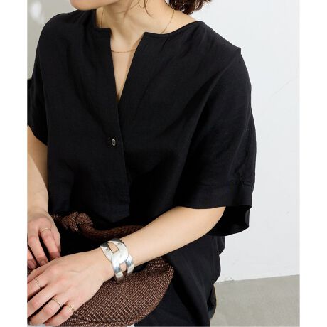 麻混で清涼感がありつつ、落ち感のあるしなやかな素材を使用し、ゆったりとしたサイズ感で夏でも涼しく着ていただけるブラウスです。