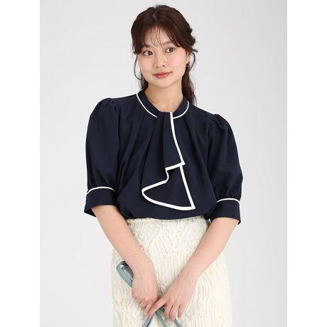 アウトラインを縁どったバイカラーのボウタイがとてもエレガントなブラウスです。ボウタイは取り外しができて、その日のスタイリングに合わせられる2way仕様。さらに接触冷感素材を使用しているのでひんやりと涼しい着心地も嬉しいポイントです。