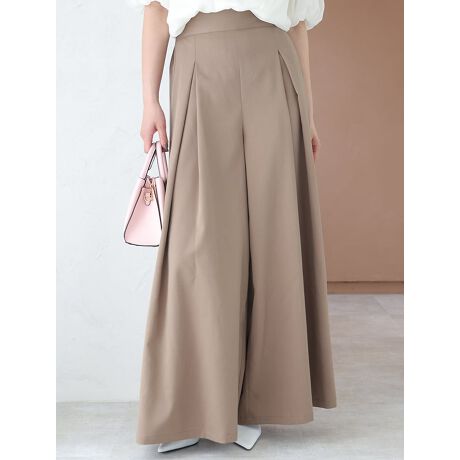 ハイウエストでスタイルアップ効果も期待できるタックワイドパンツ