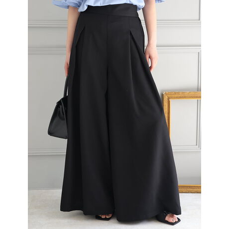 ハイウエストでスタイルアップ効果も期待できるタックワイドパンツ