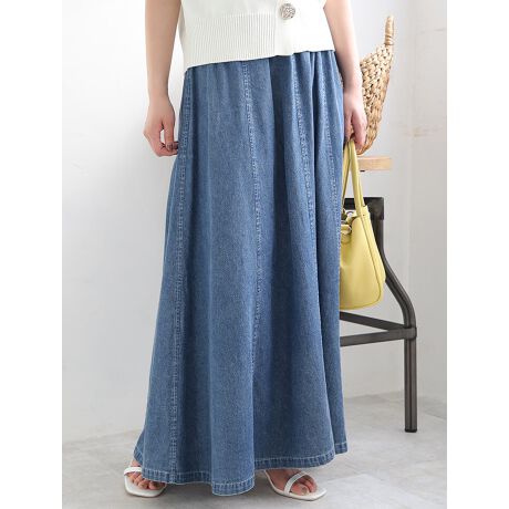 配色ステッチがポイントのデニムロングスカート
