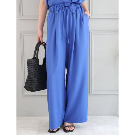 シンプルなデザインながらもウエストのリボンがアクセントになっているシンプルロングパンツです。ウエストはゴム仕様でストレスフリーな穿き心地も嬉しいポイント。同素材のカットソーとセットアップでのコーディネートもおすすめです。