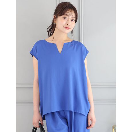 シンプルなシルエットでありながらキーネックが抜け感をプラスするカットソーです。フレンチスリーブがやさしい女性の雰囲気を演出します。同素材のロングパンツとセットアップでのコーディネートもおすすめです。