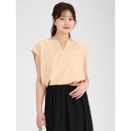 【SETUP対応】キーネックフレンチスリーブブラウス