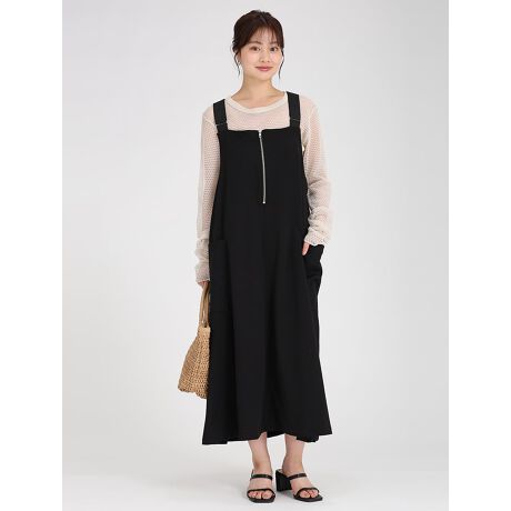 サラリとした肌触りが特徴のペアスキン生地で仕上げた着心地抜群のジャンパースカートです。フロントのジッパーと両サイドのポケットがポイントになった大人かわいいアイテムです。シワや型崩れを起こしにくい生地なのでお手入れも簡単。