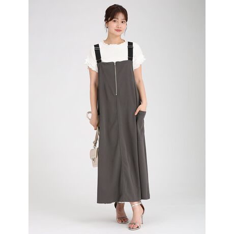 サラリとした肌触りが特徴のペアスキン生地で仕上げた着心地抜群のジャンパースカートです。フロントのジッパーと両サイドのポケットがポイントになった大人かわいいアイテムです。シワや型崩れを起こしにくい生地なのでお手入れも簡単。