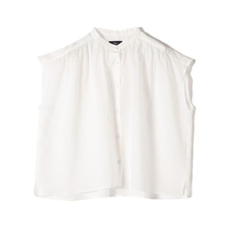 ギャザーをたっぷり施した程よくゆったりしたシルエットのバンドカラーブラウス。